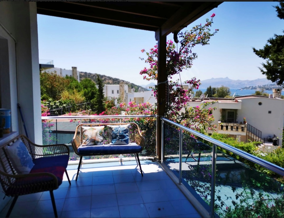 Bodrum Bitez'de Deniz Manzaralı, Full Yenilenmiş Müstakil Dubleks Villa
