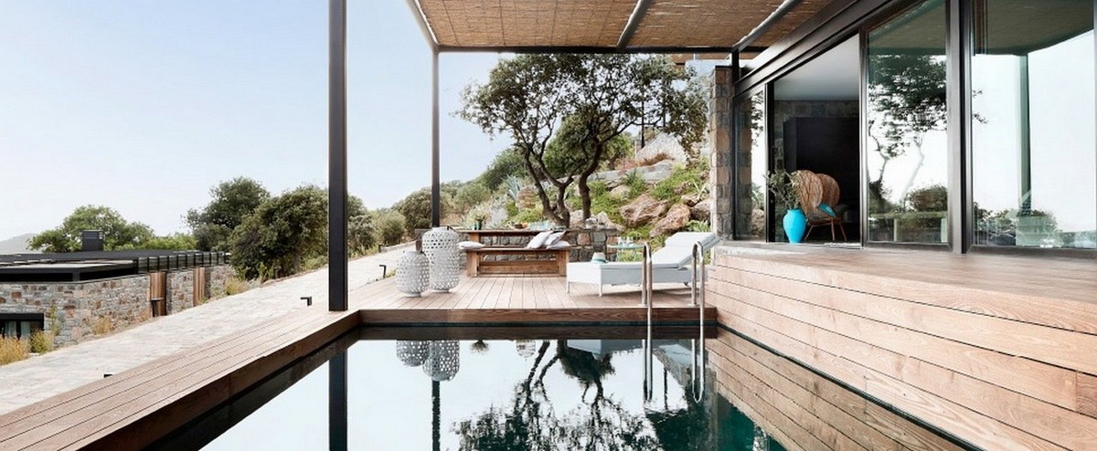 Toplam 5 adet villa 8.000 m2'lik arsa içerisinde yer almakta olup; Gümüşlük'te güneye bakan bir yamaçta yer alan ve Vadiye Denize bakan,