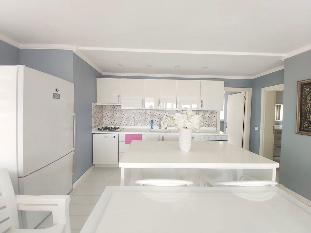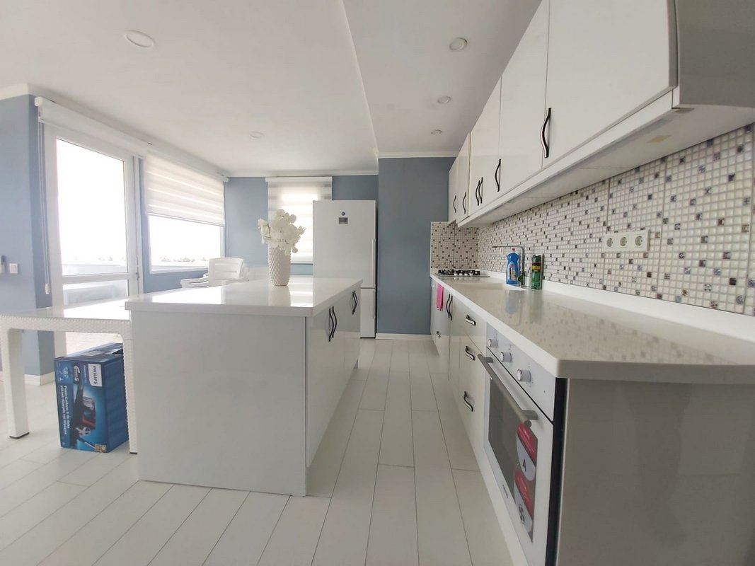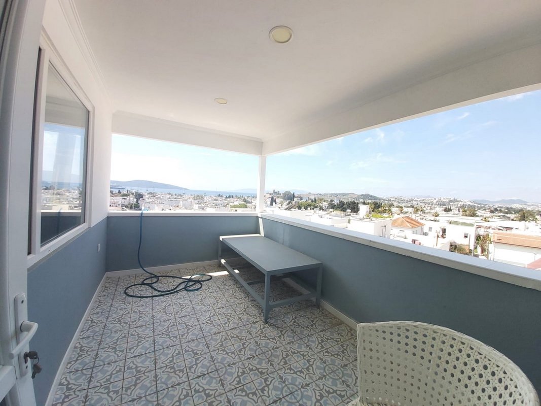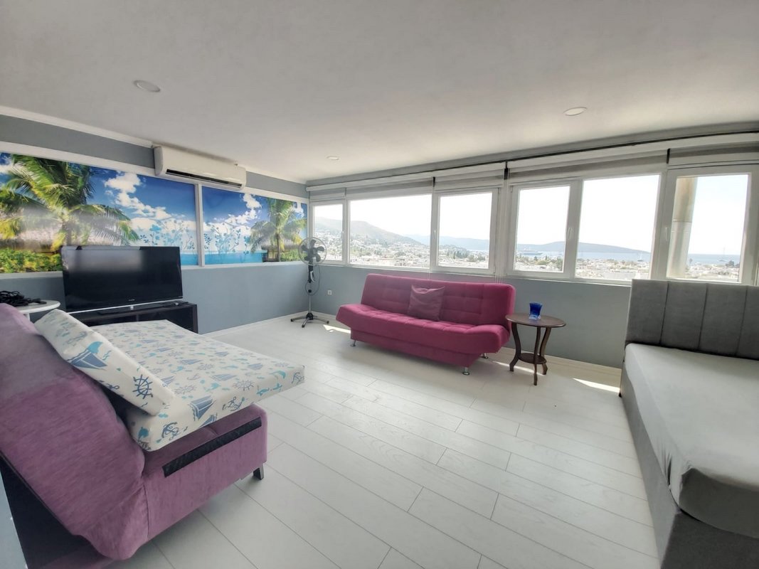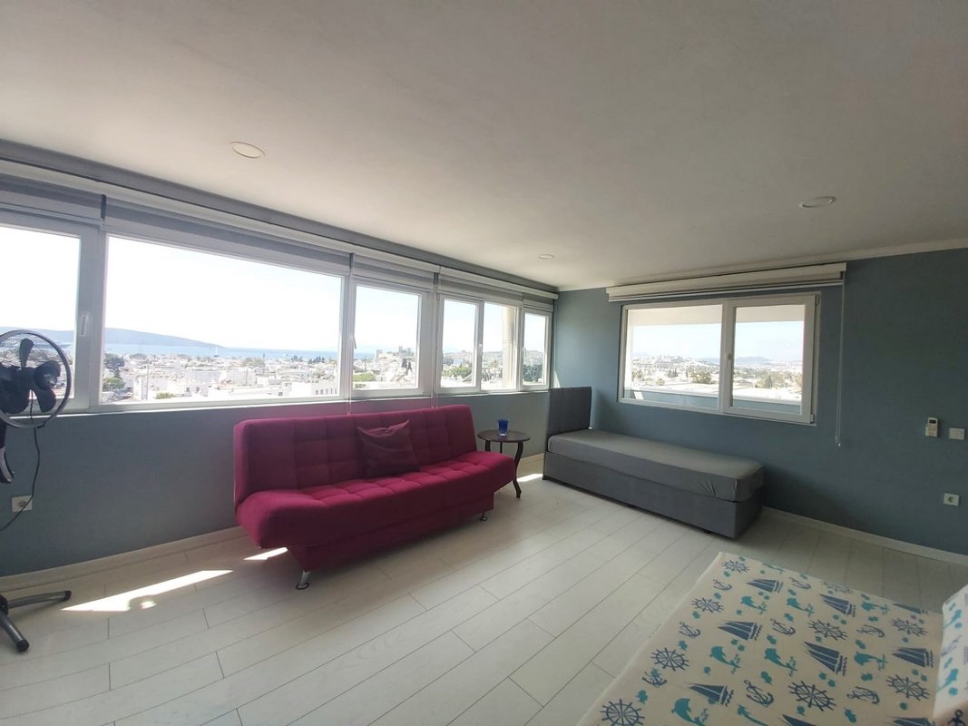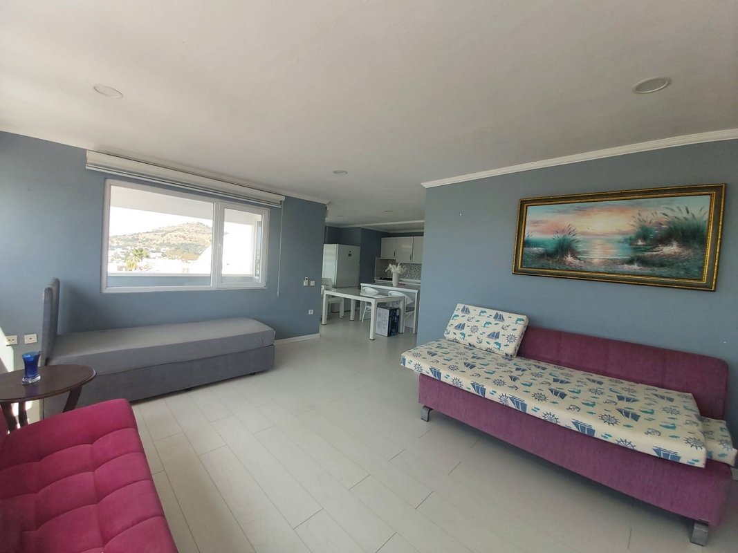 Üst Teras Kat ; Deniz manzaralı Salon Açık Mutfak 1 oda 1 banyo 2 balkon kullanımı (1+1- 70 m2 )